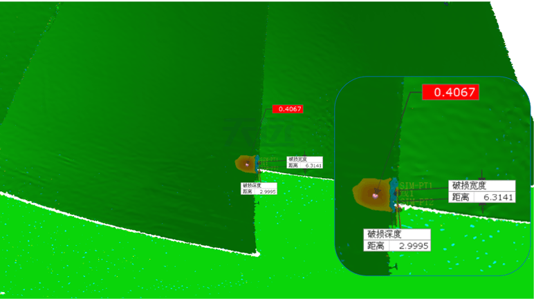 Data Analysis: The high-resolution 3D data is imported into inspection software. By comparing the scan data against the original CAD model (or a reference surface reconstructed from the surrounding undamaged area), engineers can instantly and accurately measure the precise width, depth, and volume of the damage.